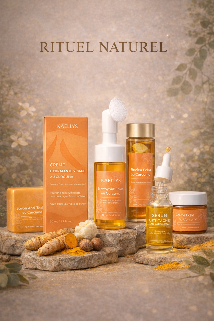 Aux ingrédients que nos grand-mères utilisaient, aux secrets qui ont traversé le temps sans jamais perdre leur force. Le curcuma, l’acide kojique naturel, les plantes qui soignent la peau sans jamais l’agresser.
